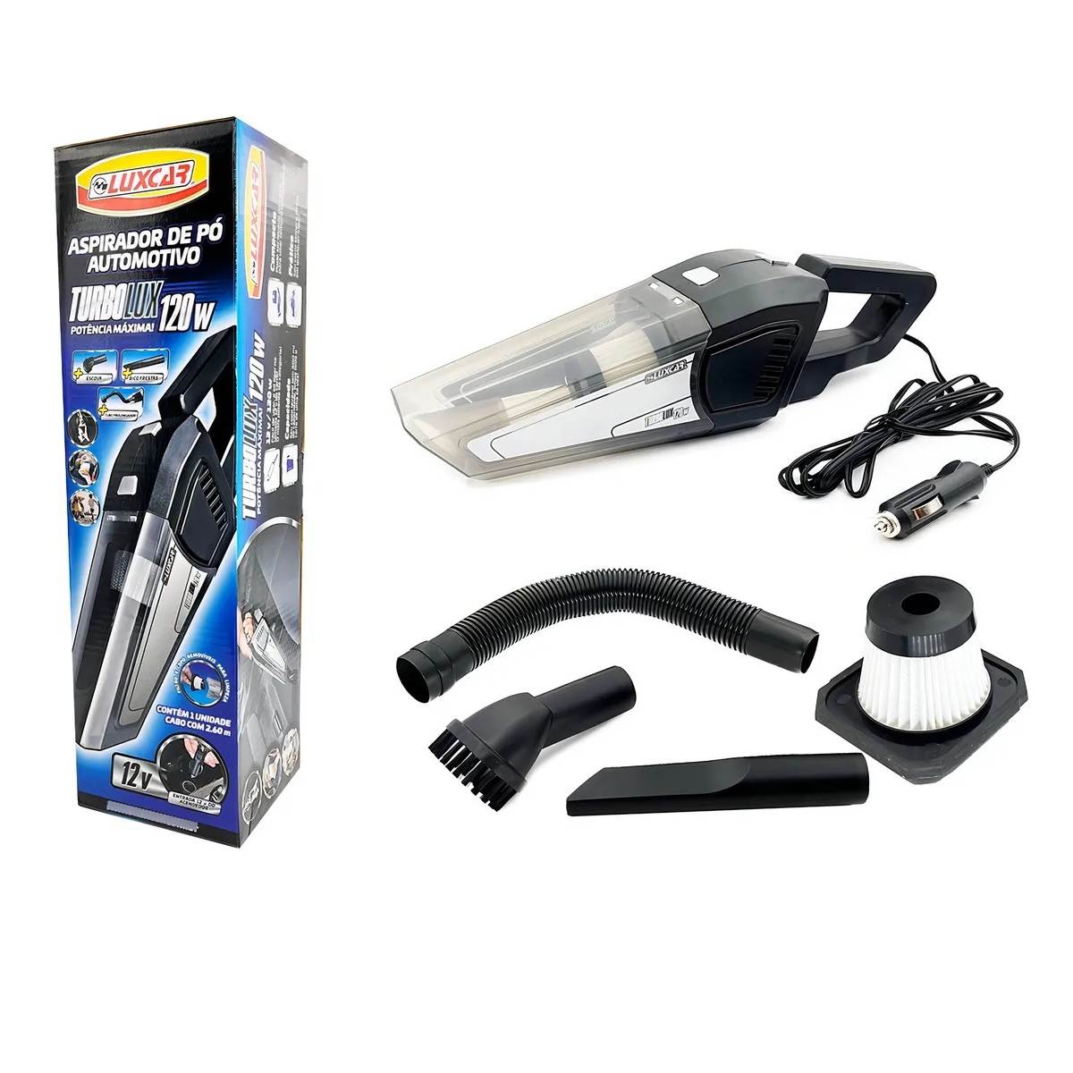 Aspirador de Pó Automotivo TurboLux Luxcar O Aspirador de Pó Automotivo TurboLux Luxcar é um produto completo! Com 120 w de potência é o mais forte da categoria, nunca um aspirador de pó 12 volts foi tão potente! Acompanha 3 incríveis acessórios: Escova, Bico para Cantos e Frestas e Tubo Prolongador. Ergonômico, possui cabo com mais de 2.60 metros de comprimento. DADOS DO PRODUTO - Cód. Interno: 012489 - Cód. Fábrica: 8500 - Capacidade: 500 ml (carro inteiro) - Voltagem: 12v - Potencia 120w - Acessórios: Escova, Bico para Cantos e Frestas e Tubo Prolongador. - Comprimento cabo alimentação: 2.60m VANTAGENS - Compacto. - Copo lavável. - Fácil de usar. - O mais potente da categoria. - Limpa todo o carro de uma só vez. - Seu carro sempre limpo em qualquer lugar. ITENS INCLUSOS - 1 Aspirador de Pó Automotivo TurboLux. - 1 Escova. - 1 Bico estreito. - 1 Tubo Prolongador. MODO DE USAR 1 - Verifique para que o cabo de força esteja completamente desenrolado. 2 - A ignição do veículo deve estar ligada antes de plugar o Aspirador de Pó Automotivo TurboLux Luxcar no acendedor de cigarros. 3 - Para ligar, use o interruptor LIGA/DESLIGA localizado no topo do seu Aspirador de Pó Automotivo TurboLux Luxcar. 4 - Para limpar pequenos espaços, cantos e frestas, utilize o bocal. O bocal é facilmente encaixado na frente do Aspirador de Pó Automotivo TurboLux Luxcar. OBS: Para esvaziar o reservatório de pó: segure o Aspirador de Pó Automotivo TurboLux Luxcar em ângulo descendente (com o reservatório voltado para baixo, para que ao abrir a sujeira não caia no chão) e aperte firmemente com o dedo polegar o botão de encaixe. O reservatório se separará do corpo e poderá ser esvaziado facilmente.
