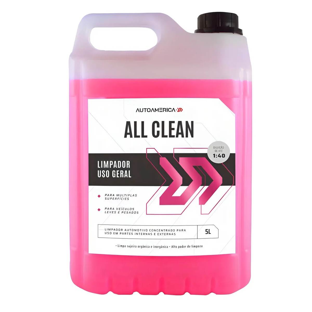 O All Clean da Autoamerica é um limpador e desengraxante multiuso de alta eficiência, ideal para remoção de sujeiras orgânicas e minerais. Com fórmula versátil e potente, ele é indicado para uso em veículos leves e pesados, motores, rodas, chassis, borrachas, latarias, máquinas agrícolas e tratores. Pode ser utilizado como substituto de desincrustantes ácidos, APCs e detergentes automotivos, oferecendo excelente rendimento graças à sua alta capacidade de diluição. Como Usar Diluição: Dilua o produto conforme o tipo de superfície e o nível de sujeira. Exemplos: - Motor / Caixa de rodas: 1:60 (leve), 1:40 (média), 1:30 (pesada) - Rodas com partes ferrosas: 1:30 (leve/média), 1:20 (pesada) - Lataria (com shampoo): 1:100 (leve), 1:40 (média), 1:35 (pesada) - Painel: 1:40 - Couro: 1:60 (leve), 1:30 (pesada) - Carpetes: 1:40 (leve), 1:30 (pesada) - Bancos: 1:30 (pesada) - Aplicação: Com a superfície molhada, pulverize o produto diluído utilizando borrifador ou pulverizador. - Esfregação: Utilize equipamentos adequados como pincéis, escovas ou luvas de microfibra. - Remoção: Enxágue com água em abundância. Benefícios - Alta diluição: Rendimento superior, com diluição de até 1:100 dependendo da aplicação. - Versatilidade de uso: Indicado para diversas superfícies, incluindo pintura, rodas, motores e interior. - Alto poder de limpeza: Remove sujeiras orgânicas e inorgânicas com facilidade. - Uso profissional: Ideal para lavadores, centros automotivos, oficinas e agronegócio. Informações Técnicas - Tipo: Limpador e desengraxante multiuso. - Conteúdo: Disponível em 5 litros e 1,5 litros. - Diluição recomendada: Até 1:100 no uso geral, com variações específicas por aplicação. - Indicação: Pintura, rodas, motores, chassis, borrachas e partes internas. - Aplicação: Pulverização manual com enxágue posterior. - Rendimento: Varia conforme a diluição e o nível de sujidade. Composição - Surfactante - Veículo - Sequestrante - Conservante - Corante Cuidados - Armazenamento: Conservar em local fresco, arejado e longe da luz solar direta. - Segurança: Não ingerir. Evitar contato com olhos e pele. - Manuseio: Usar EPIs como luvas e óculos de proteção durante a aplicação. - Em caso de acidente: