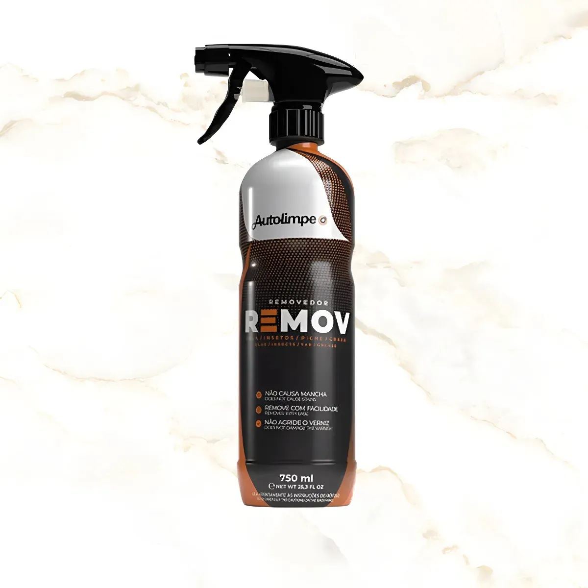 O REMOV é um removedor a pronto uso de alta performance desenvolvido para retirar graxa, cola, piche e insetos de superfícies em geral. MODO DE USO: Antes de utilizar o REMOV, certifique-se em uma área não visível a compatibilidade do produto. É importante salientar que a área a ser limpa deve estar em temperatura ambiente e protegida do sol. COLA: Pulverize o REMOV na área a ser limpa, aguarde 30 segundos. Com auxílio de um pincel ou de uma escova, esfregue, em seguida, enxágue com água em abundância. Caso necessário repita a ação até a remoção da sujidade. Em situações em que a cola apenas amoleça, utilize uma espátula de plástico com cuidado para remover. Em seguida, enxágue com água em abundância; INSETOS: Pulverize o REMOV na área a ser limpa, aguarde 30 segundos. Com o auxílio de um pincel ou de uma escova, esfregue, em seguida, enxágue com água em abundância. Caso necessário, repita a ação até a remoção da sujidade; GRAXA: Pulverize o REMOV na área a ser limpa, aguarde 30 segundos. Com o auxílio de um pincel ou de uma escova, esfregue, em seguida, enxágue com água em abundância. Caso necessário, repita a ação até a remoção da sujidade; PICHE: Pulverize o REMOV na área a ser limpa, aguarde 30 segundos. Com o auxílio de um pincel ou de uma escova, esfregue, em seguida, enxágue com água em abundância. Caso necessário, repita a ação até a remoção da sujidade. PRECAUÇÕES: Não aplique próximo à face. Não ingerir. Evite a inalação e aspiração. Evite contato prologado com a pele. Em caso de contato com os olhos e a lave imediatamente com água em abundância. Depois de utilizar o produto, lave as mãos com água e sabão e seque-as. Em caso de ingestão, inalação ou aspiração, não provoque vômitos, remova a pessoa para um local arejado. Se houver sinais de intoxicação, dirija-se imediatamente a um serviço médico levando o rótulo do produto ou consulte o Centro de Intoxicação CEATOX: 0800 722 6001. CONSERVE FORA DO ALCANCE DAS CRIANÇAS E DOS ANIMAIS DOMÉSTICOS.