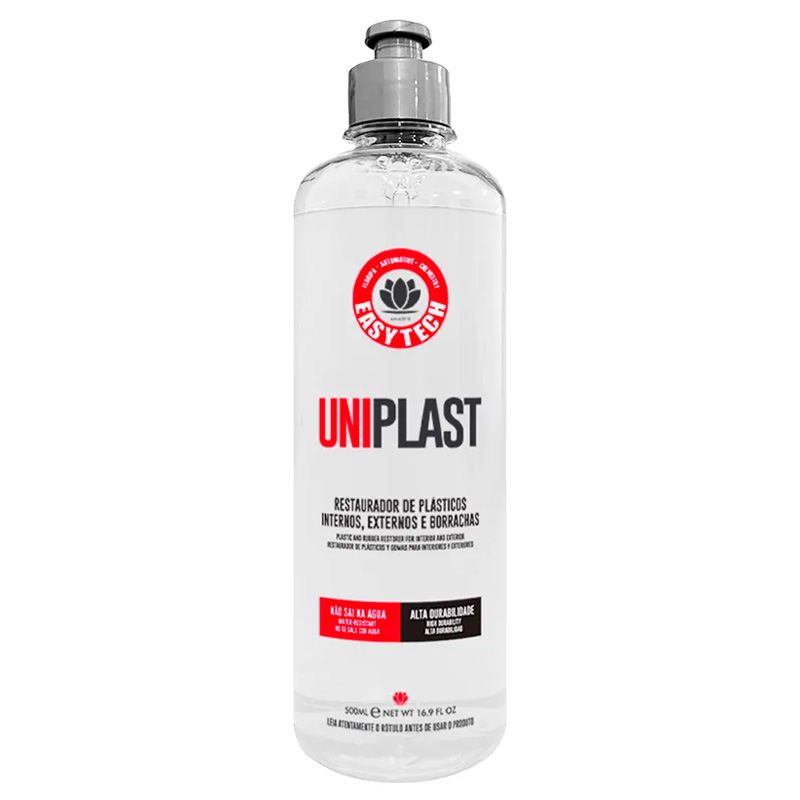 NIPLAST é um renovador e protetor de plásticos automotivos 3 em 1 desenvolvido para uso em plásticos internos, externos e borrachas, com alto poder de renovação, acabamento profissional e resistência superior à água e à limpeza. Com fórmula balanceada totalmente a base de água e SiO2 de fácil aplicação, UNIPLAST realça a cor original dos plásticos, devolvendo o aspecto de novo e formando uma película protetora que resiste à ação do tempo, lavagens e produtos químicos suaves. A repelência a líquidos e sujeira do UNIPLAST vai te surpreender. Ao contrário de produtos que oferecem apenas brilho momentâneo, UNIPLAST entrega um resultado duradouro, sem grudar poeira e com toque seco e acabamento uniforme, gerando proteção de até 6 meses em plasticos internos e 3 meses em plásticos externos. Inspirado em oferecer mais possibilidades, UNIPLAST pode ser usado em diversas situações como proteção de painéis, borrachas e até plásticos externos expostos ao tempo. Um verdadeiro coringa, 3 em 1, com repelência instantânea e muita resistência. Indicações de uso: Painéis, consoles e acabamentos internos Para-choques, retrovisores, frisos e molduras externas Plásticos desbotados e ressecados Peças plásticas expostas a raios UV, água e sujeira Erasers Lona marítima Benefícios: Restaura o aspecto original dos plásticos Protege contra sol, chuva e agentes de limpeza Brilho duradouro com toque seco Até 6 meses de proteção em plásticos internos; 3 meses de proteção em plásticos internos. Não gruda poeira Fácil aplicação e alta durabilidade Seguro para uso interno e externo Proteção UV Modo de uso: Limpe e seque bem a superfície. Aplique UNIPLAST com aplicador de espuma ou pano de microfibra. Espalhe uniformemente até obter acabamento homogêneo. Aguarde a secagem. Reaplique se desejar mais brilho ou proteção. UNIPLAST é a solução ideal para quem busca um renovador de plásticos resistente, eficaz e com acabamento profissional, seja no uso cotidiano ou em detalhamentos automotivos de alto nível.