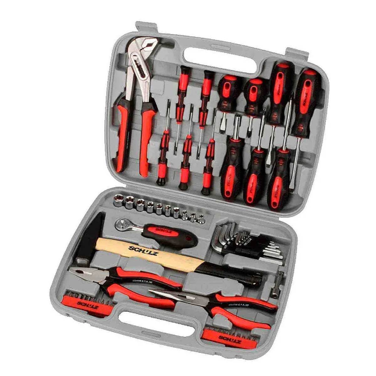 Maleta Ferramentas Schulz 57 Peças As maletas multifuncionais Schulz foram pensadas para atender as necessidades básicas do seu dia a dia. São itens fáceis de armazenar e transportar, sendo ideal para reparos, ajustes, acertos, instalações e manutenções diversas em casa, escritório, veículos, dentre outras opções. De fácil organização, esta linha de ferramentas está disponível em maletas contendo de 27 a 116 peças. Confira e escolha a melhor opção para sua necessidade. Itens Inclusos: 1x Chave Bomba D'água 5x Chaves de Precisão 1x Chave Suporte para Bits 3x Chaves de Fenda 3x Chaves Phillips 20x Bits 1x Alicate Bico Longo 8" 1x Alicate Universal 7" 1x Matelo Pena 1x Prolongador 9x Soquetes de 4 à 13mm 10x Chave Catraca 1/4 1x Kit Chaves Allen Referência de Fábrica 927.0001-0 Precauções e Segurança - Este produto deve ser operado somente por adultos. - Leia cuidadosamente o manual até que o compreenda completamente, e siga todas as instruções de segurança e de funcionamento. * Imagens meramente ilustrativas * Todas as informações divulgadas são de responsabilidade do Fabricante/Fornecedor.