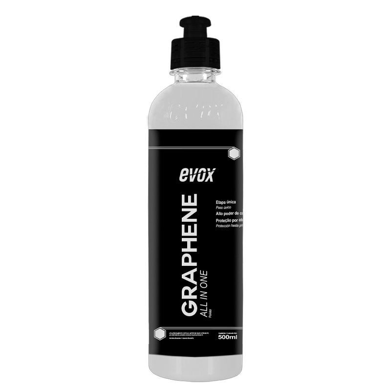 Polidor de etapa única GRAPHENE ALL IN ONE é um polidor de etapa única que promove uma incrível proteção à base de grafeno e que dura até 5 meses. Seu alto poder de corte elimina riscos e swirls médios a severos (comparável a marcas de lixa P2000 ou mais finas), deixando um ótimo acabamento. MODO DE USAR 1. Agite bem o produto antes de usar. 2. Aplique entre 5 e 6 gotas na boina e espalhe o produto. 3. Inicie o polimento com politriz rotativa, na rotação entre 800 a 1500 rpm ou em velocidade 3000 a 4800 OPM, no caso de politriz roto-orbital, em área não superior à 60cm x 60cm. 4. Remova o produto com auxílio de toalha de microfibra macia. 5. Se necessário, repita o processo até obter o resultado e brilho desejado.