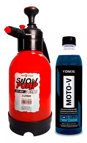 Kit Sgt Pulverizador Snow Pump 2l + Lava Motos Moto-V 500ml Disponível: SGT-9924 Snow Pump Snow Foam Híbrido 3 em 1 - Água, Químicos e Espuma Aplicações Ideal para lavagem automotiva. Características Capacidade 2 Litros; Pulverizador Manual; Snow Foam; Aspersor; Super leve; Pulveriza espuma grossa sobre qualquer veículo; Remove sujeiras e detritos evitando hologramas e arranhões; Borrifa e pulveriza a água de forma contínua e econômica; Possui válvula de alívio de pressão, para aliviar a pressão do sistema, evitando o desperdício de produto e evitando acidentes com produtos químicos. Instruções de Uso: Desaperte o copo do canhão; Adicione a solução detergente (de preferência morna); Conecte o copo ao canhão; Enxague o automóvel; Cubra o automóvel com a espuma ajustando o leque; Faça o enxague e secagem de preferência com toalhas de microfibra. Moto-V É Um Lava-Motos, Desenvolvido Para Limpeza De Alta Eficiência. Sua Formulação Equilibrada Permite Uso, Sem Agredir, Em Todas As Partes Da Motocicleta, Seja Motor, Pintura, Metais Ou Plásticos. As Possíveis Diluições Do Produto Proporcionam Ao Mesmo A Remoção Dos Mais Diversos Tipos De Sujeira, Como Barro, Lama, Graxa E Óleo. Características: - Produto de Excelente Qualidade Serve para os Modelos e Anos: Universal Especificação Técnica: - Marca SGT 701992400 - Modelo Kit Sgt Pulverizador Snow Pump 2l + Lava Motos Moto-V 500ml - Material Plástico'.