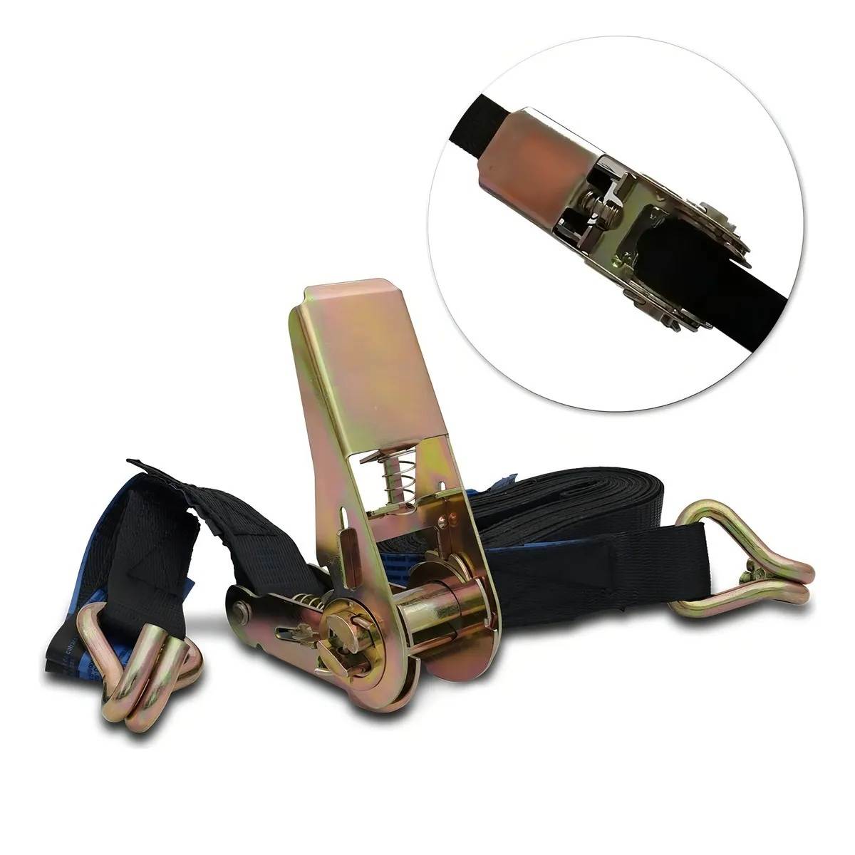 Jogo de cinta com catraca para amarração de carga 0,8 tf/0,4 tf CC080 VONDER Indicado para amarração de cargas. Proibido uso de alavanca no punho da catraca móvel. Proibido uso para içamento de cargas. Não utilizar em cantos vivos ou arestas sem as devidas proteções, não exceder a carga de trabalho. Possui gancho (terminal de fixação) tipo "J". Catraca e gancho fabricados em aço bicromatizado, proporcionando boa resistência à oxidação. Conteúdo da Embalagem: 1 Jogo de cinta para amarração de carga, composto por: 1 cinta com terminal de fixação tipo Jota e 1 catraca com terminal de fixação tipo Jota. Detalhes técnicos: Material da cinta: Poliéster Material dos acessórios da cinta: Aço bicromatizado Cor: Preta Largura da cinta: 25 mm Comprimento da cinta ajustável: 4,1 m Comprimento da cinta fixa: 0,5 m Comprimento total do conjunto: 4,6 m Carga de trabalho em amarração direta: 0,40 tf Carga de trabalho em amarração enlaçada: 0,80 tf Carga de ruptura: 1,6 tf Fator de segurança: 2:1 Força de tensão manual: 25 daN Força de tensão nominal: 80 daN Alongamento total da cinta: Máximo 7% Norma de referência da cinta: NBR 15883-2 Terminal de fixação: Jota Massa aproximada (peso): 0,361 kg