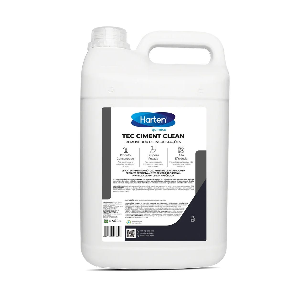 O Tec Ciment Clean da Harten Química é um removedor de incrustações de alta eficiência, desenvolvido especialmente para a limpeza pesada de pisos pós-obras, resíduos inorgânicos, manchas e incrustações. Ideal para pisos que não exigem muitos cuidados, proporcionando um acabamento impecável.