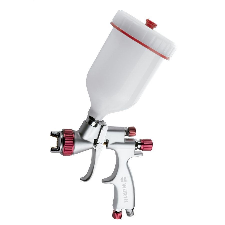 Pistola de pintura profissional com tecnologia HVLP. Utilizada para aplicação de primers e produtos similares. Características: - Sistema de pulverização HVLP*; - Design moderno fosco com detalhes em vermelho; - Acabamento polido para rápida e fácil limpeza; - Ótima empunhadura; - Fabricado com ligas especiais; - Bico e agulha fabricados em aço inoxidável 303; - Caneca fabricada em nylon®. Aplicações: - Aplicação de primers e similares em: chapas/carrocerias de veículos, portões, grades e peças metálicas em geral. Principais Vantagens: - Alta taxa de transferência de material; - Economia de material; - Produtividade; - Peças internas em aço inoxidável; - Kits de bicos intercambiáveis; - Capa de ar em bronze anodizado. Tecnologia de atomização HVLP Aplicação Primers e produtos similares Tamanho do bico 1,7 mm Pressão de trabalho ideal 2,0 Bar / 29 Psi Pressão máxima de trabalho 2,5 Bar / 35 Psi Tamanho do leque Aprox. 280 mm Distância de pulverização ideal 17 cm Consumo de ar (pcm-l/min) 14 Pcm / 397 l/min Capacidade da caneca 600 ml Peso 659g Rosca de conexão ¼” NPT