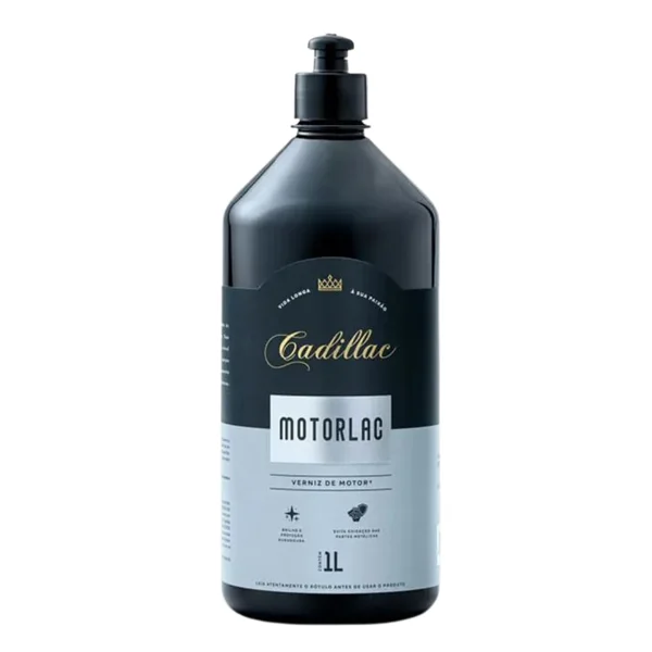 Motorlac é o verniz de motor que a Cadillac desenvolveu para proteger e fazer seu motor brilhar. Sua formulação possui agentes abrilhantadores de alto nível que vão produzir um brilho refinado, sem deixar as peças engorduradas. Também possui agentes que vão garantir proteção as peças do motor, prevenindo contra a oxidação e ressecamento, através da formação de película que resiste a altas temperaturas. Brilho refinado à peças plásticas, borrachas e metais do motorProtege contra oxidaçãoProduto a base de solvente