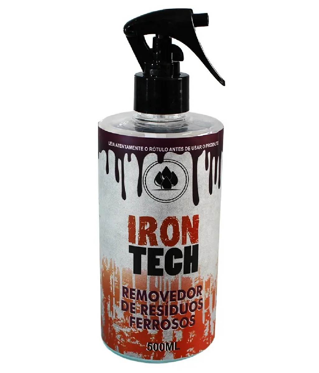 Irontech é um poderoso removedor de partículas ferrosas, oxidação e pó de ferro em vernizes, metais, tecidos, couro e vidros. Possui excelente poder de limpeza, agindo rapidamente e alterando sua coloração ao encontrar um contaminante, apresentando um tom roxo. Ao entrar em contato com partículas ferrosas, elas reagem e se solubilizam em água, sendo facilmente removíveis. Essa descontaminação devolve à superfície o aspecto natural e original, brilho e lisura. As contaminações por partículas ferrosas podem originar do pó das pastilhas de freio e poeira em suspensão. Normalmente, esse tipo de contaminação fica impregnada nos poros de vidros e vernizes, tornando a remoção difícil com uma claybar, sendo somente possível através do uso de Irontech. Aplicação: - Pode ser aplicado em rodas (ferro, alumínio ou cromadas) - Pintura automotiva - Vidros - Tecidos - Couro - Metais O local onde Irontech é mais utilizado são nas rodas, que facilmente ficam contaminadas com o pó oriundo das pastilhas de freio. Ao borrifar Irontech nas rodas, você poderá notar uma alteração quase imediata de cor, demonstrando a ação do produto sobre o contaminante. É recomendado esfregar levemente a superfície durante a ação do produto com o uso de pincéis macios, ajudando a desprender os contaminantes e tornando a limpeza mais fácil. Irontech possui um cheiro característico originado pelo Tioglicolato de Amônio, matéria-prima base do produto. Tem pH neutro e sua aplicação é bastante segura. Modo de usar: 1. Lave a superfície normalmente. 2. Borrife Irontech na superfície. 3. Utilize um pincel ou escova de detalhamento para esfregar gentilmente o produto. 4. Caso existam partículas de ferro oxidado, o produto terá alteração de cor de incolor para roxa ou vermelha. 5. Se não houver mudança de cor, a superfície está livre de contaminação por partículas de ferro oxidado. 6. Utilize água em abundância para remover o excesso.