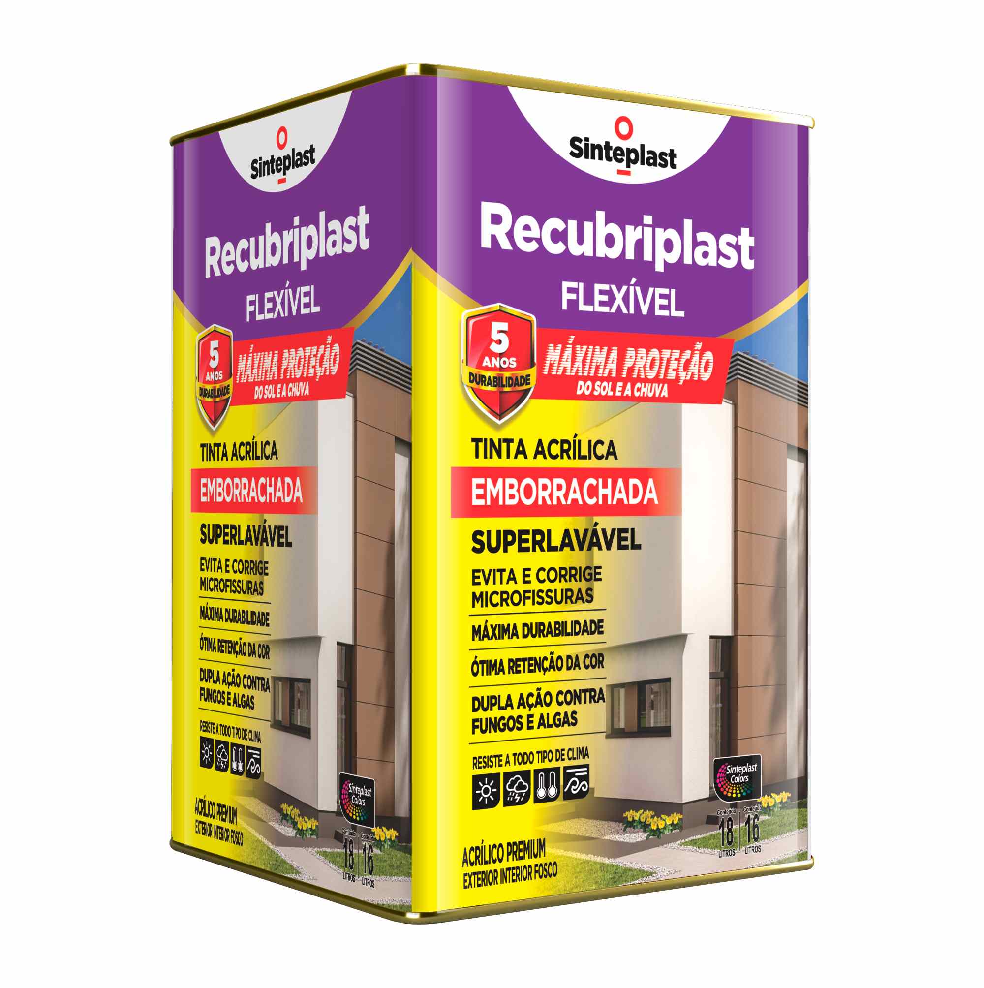 Aplicado nas condições recomendadas, evita e corrige microfissuras até 1 mm. Após o período de cura, forma uma película impermeável, de ótimo nivelamento sem emendas e flexível. Possuí dupla ação contra mofo e algas e é capaz de acompanhar a dilatação e retração das paredes causadas sem emendas e flexível. Rendimento: 20m² acabado Galão (3,6L) e 100m² acabado lata (18L). Acabamentos Fosco